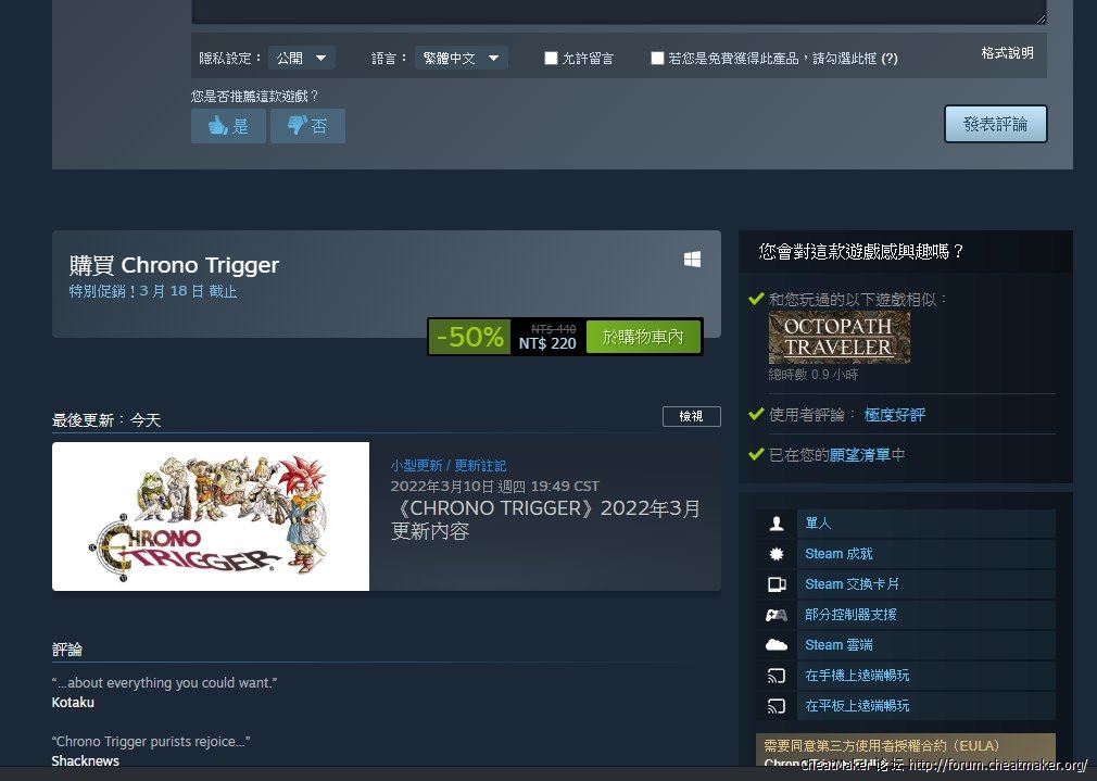 新增功能[/p][p=32, null, left] 將存檔槽增加至20個。[/p][p=32, null, left] 其他小問題的修正。[/p][p=32, null, left] 以上就是超時空之輪3月更新內容一覽全部內容[/p]