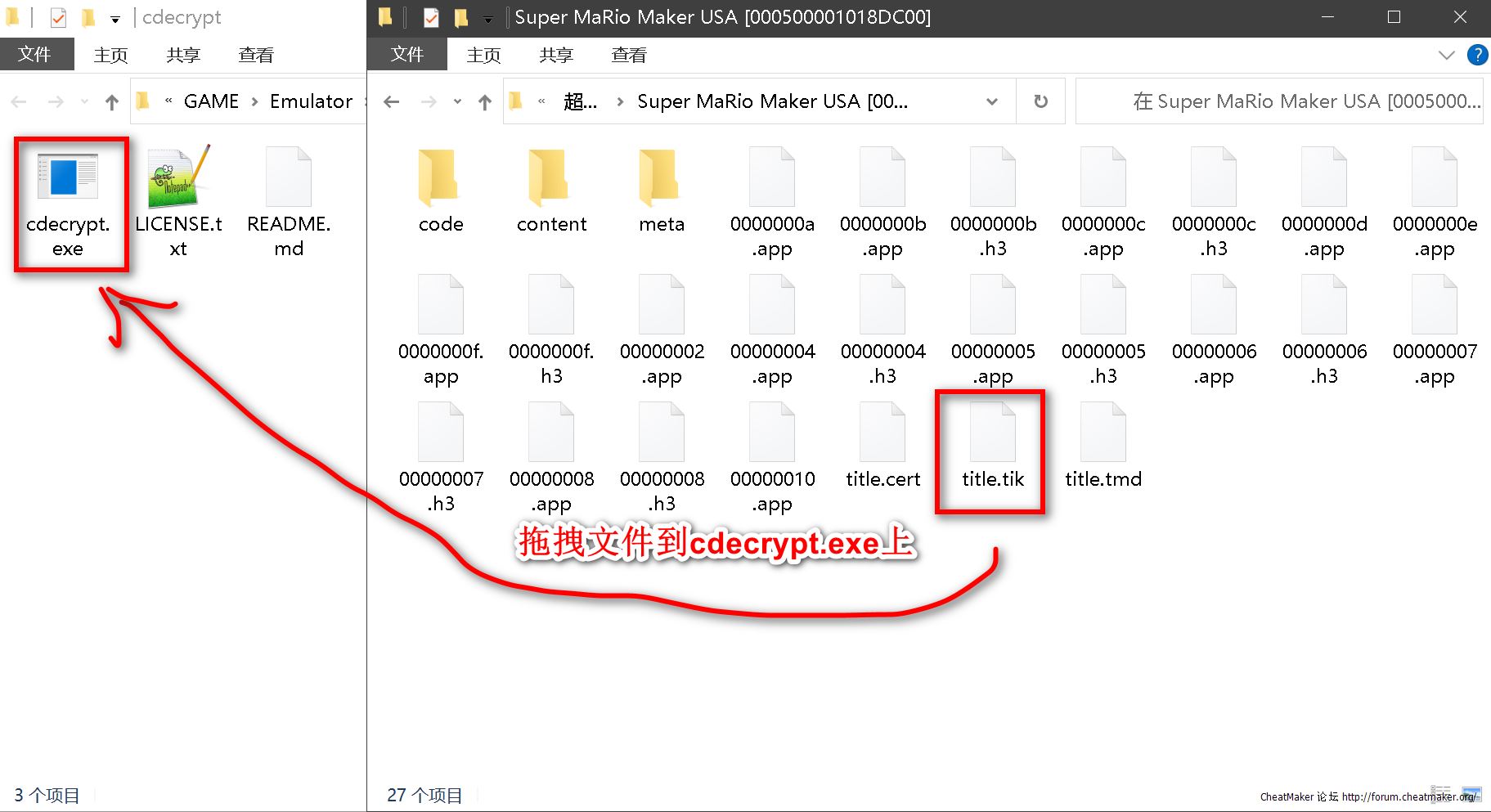 3.解压游戏和cdecrypt,查找游戏文件夹中的title.tik文件。