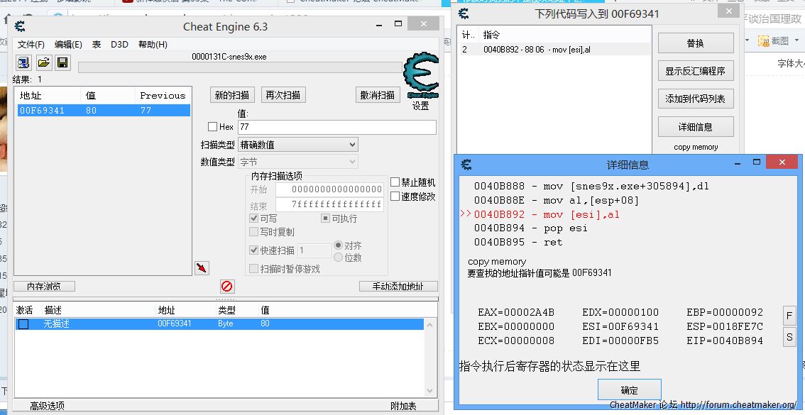 SNES9X的基地址你可以下载我做好基地址文件以及对应的模拟器版本做参考