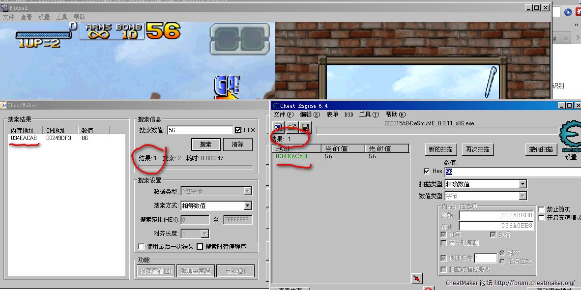 DeSmuME 0.9.11(x86)的PC内存区域通过ArtMoney可得知是固定的032A0EB8--036A0EB8