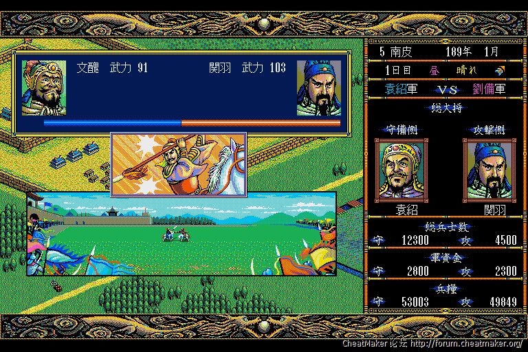 说起PC98,其实熟悉的朋友会知道,通常PC98相比DOS的相同游戏,在音乐音效方面要甩DOS不知道多少条街!三国3这方面你也可以体会出来,不过可能因为游戏比较古老的原因,并没有体现得那么明显。你要不信可以试试三国4、5、野望5、6这些后期一点的游戏,我觉得你应该会爱上PC98~