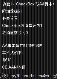 脚本是CE里自动汇编的,在CE里有效果,在CM里没效果