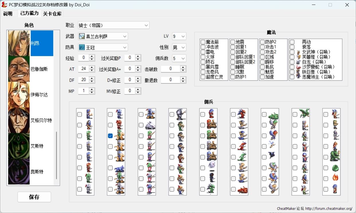 之前已有2种PC梦幻模拟战2存档修改器,但都十分不完善,于是本人重新制作。