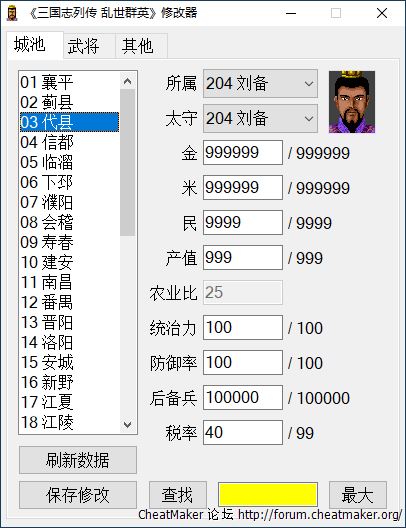 【MD】《三国志列传 乱世群英》汉化版 修改+内存修改器