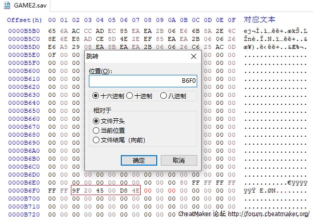 B6F0,假如你的是游戏中的存档,这下面会有很多道具数据,但你向下滚动直到发现大量的0000字节,那么0000字节之前的就是你当前存档道具的所有量,我们在这0000字节开始覆盖内容。