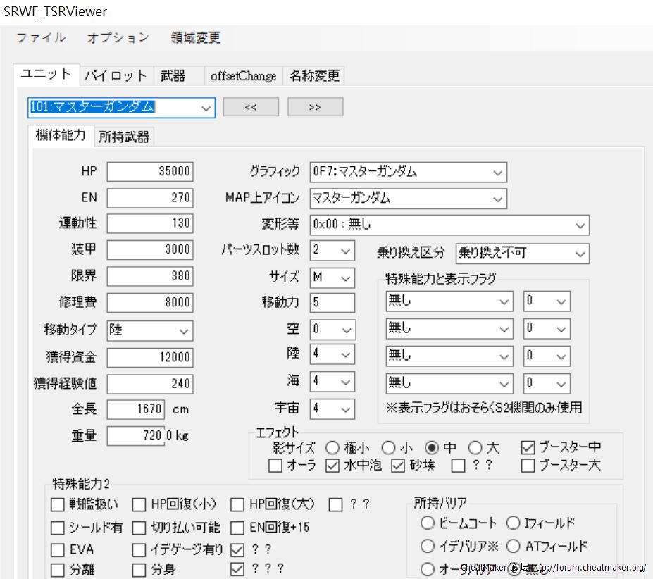 機戰F有些機體的機師明明有劍切技能(像東方不敗、西瓜冰)但卻不能切,應該是遊戲原設定那些機體沒有持劍,想問如何修改機體持劍持盾?求大大指教。