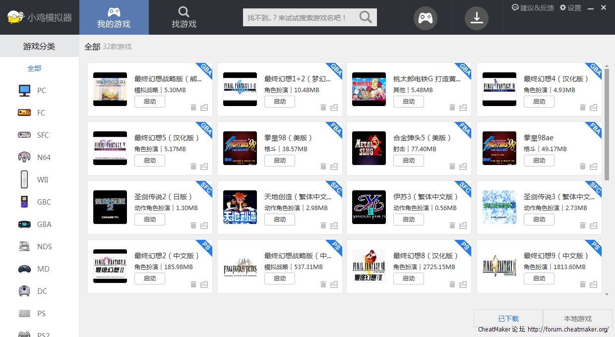 也可以自己抓ROM來玩,修改過的ROM也可以玩(要放在他指定的資料夾)