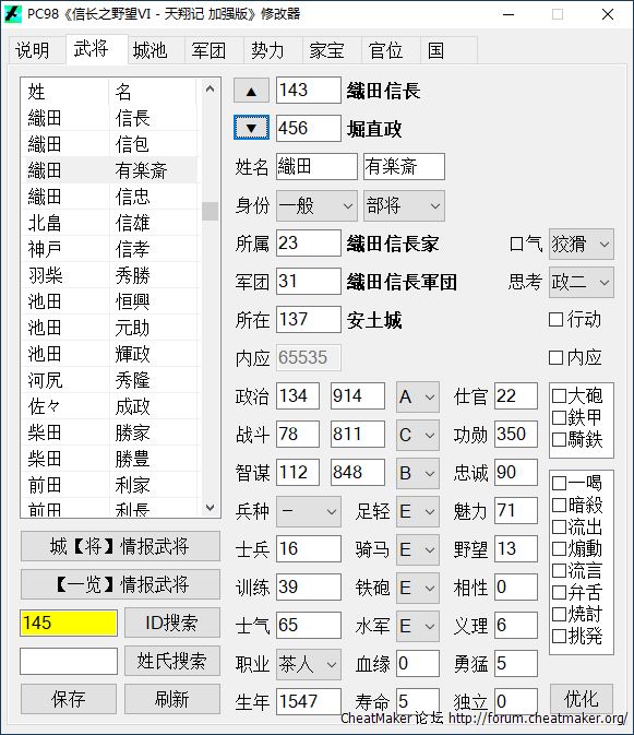 【PC98】《信长之野望 天翔记加强版》修改+修改器 [复制链接]