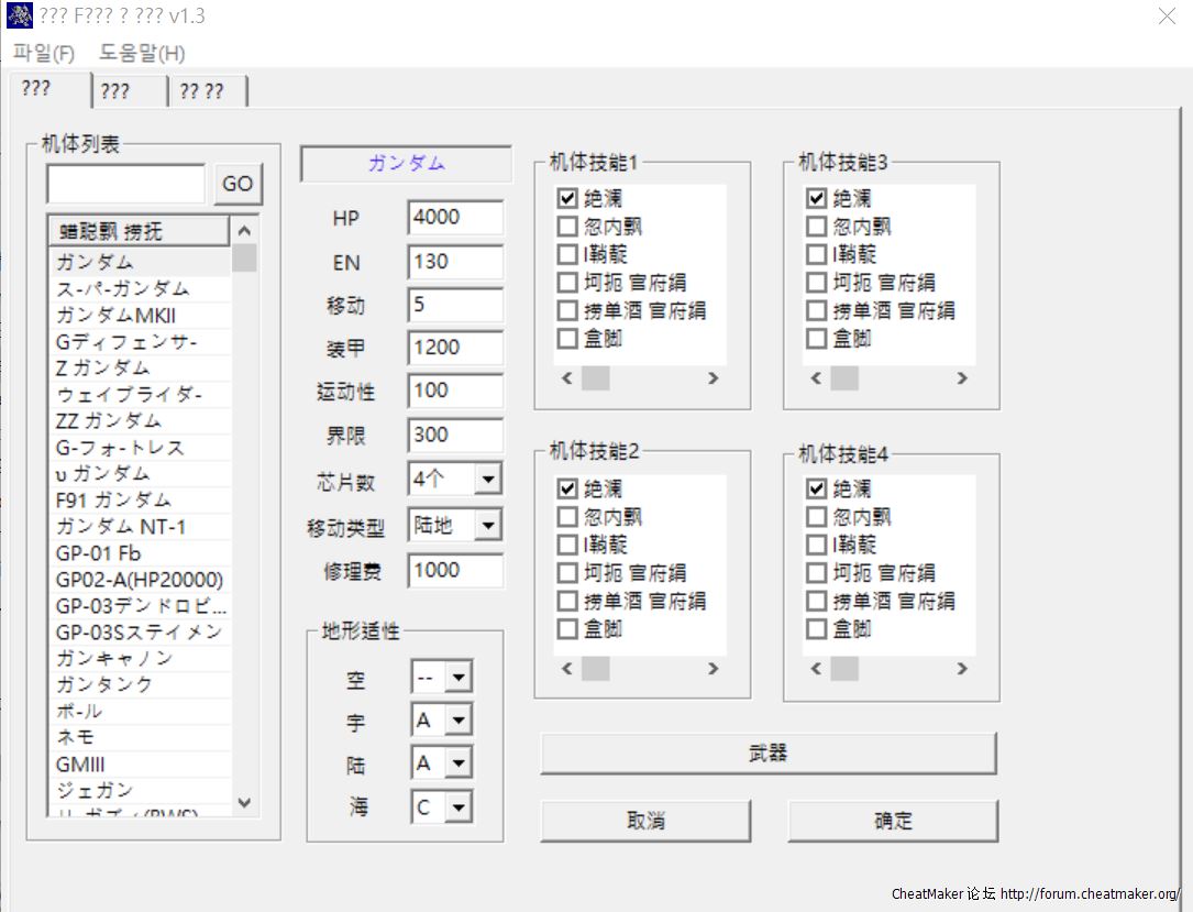 《超級機器人大戰F 完結編》 rom修改器