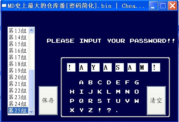 MD 推箱子游戏,最近夜班都玩这游戏,做了个简化密码的修改器