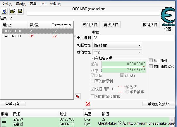 这个地址比较奇葩,就是即使你重开游戏,下次保存兵的地方还是这个地址0012C4C0不变,好像是个基址,但不是绿色的,且不支持写入。(另外我不知道红警怎么窗口化,每次在CE和游戏之前切换的时候总是会发现该地址的值瞬间变化为255,切出游戏后恢复正常,也不知什么原因?)