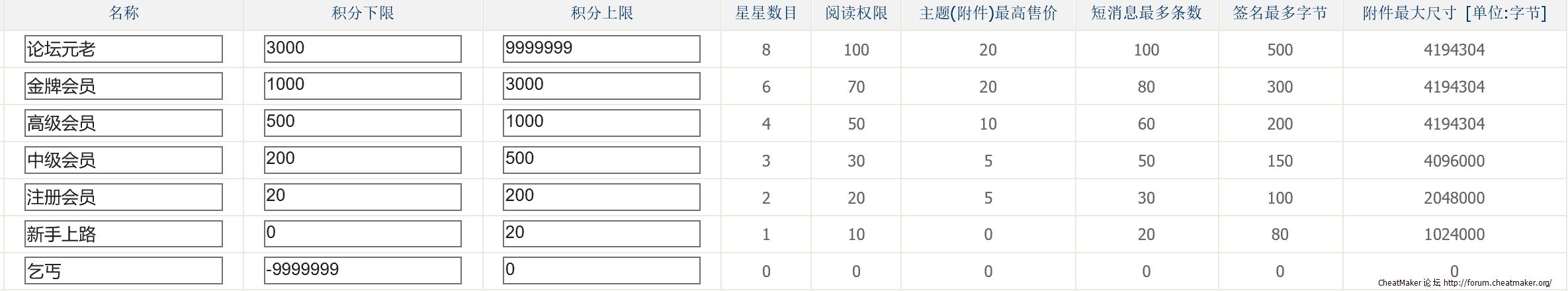 论坛阅读权限及积分表