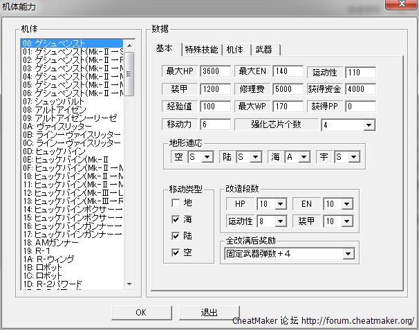 原始ROM、OG2 ROM修改器汉化版、机器人大战OG2特殊技能修改器