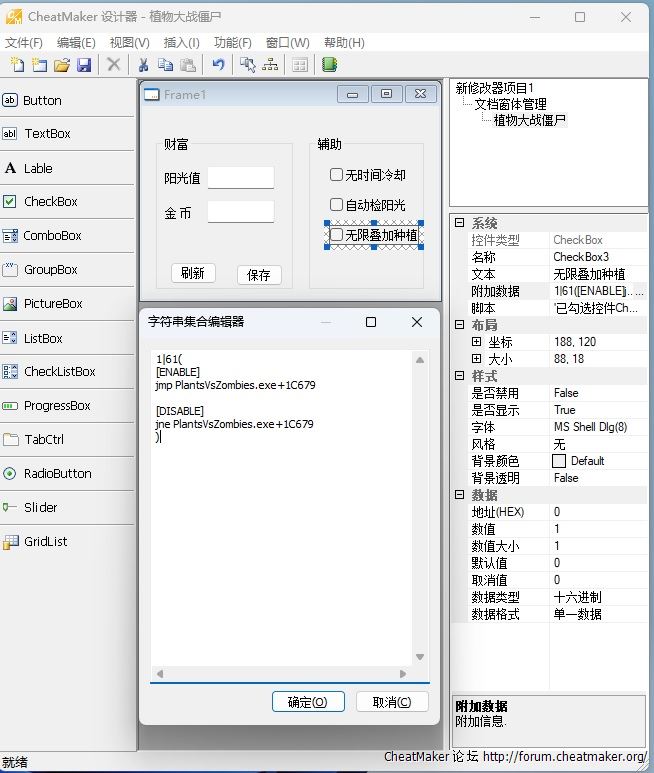这是CE里通过自动汇编 -- CT表框架代码 -- 代码注入