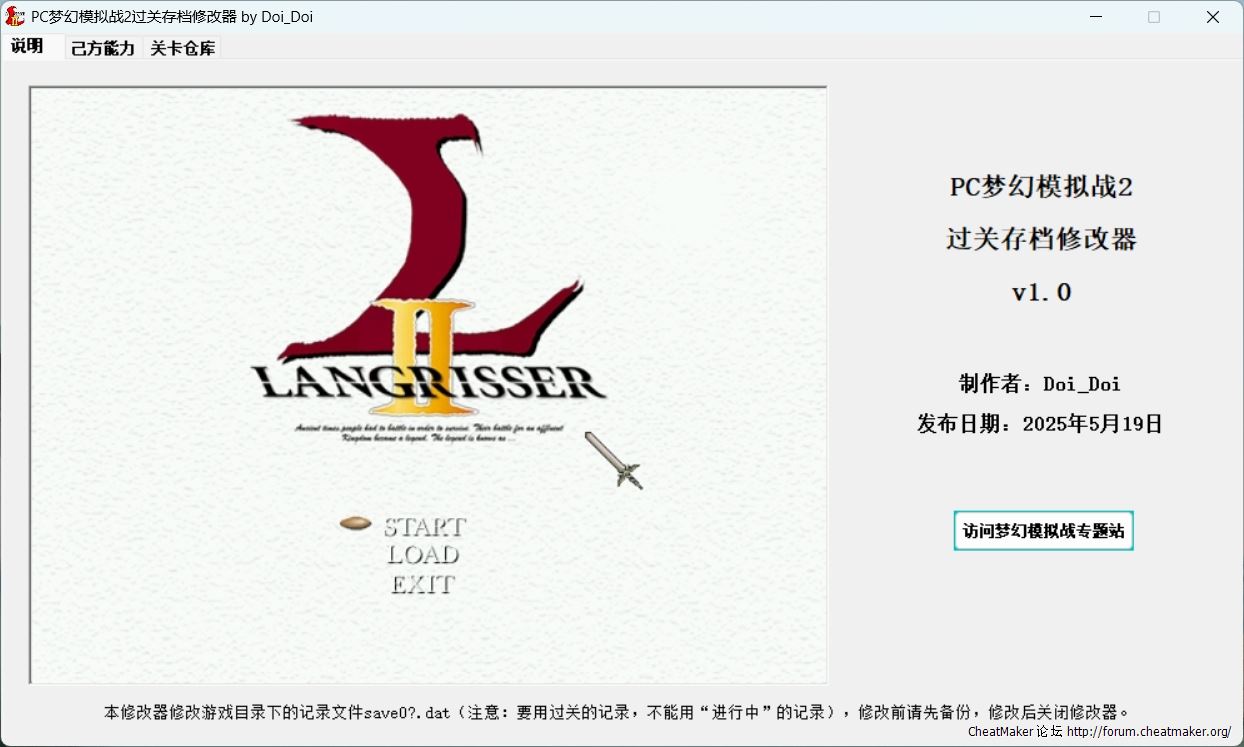 之前已有2种PC梦幻模拟战2存档修改器,但都十分不完善,于是本人重新制作。