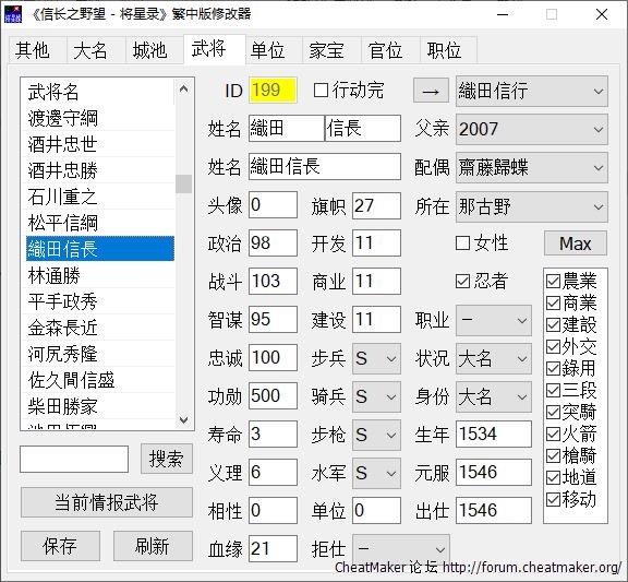 【Win】《信长之野望 - 将星录》程序+剧本+内存编辑器