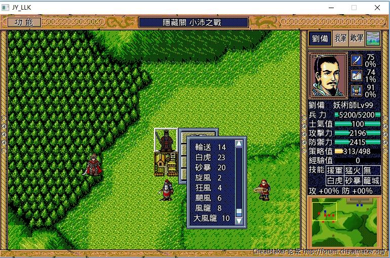 我自己新加了一个狂风特技,可以使用风系策略(在原有的毒系策略基础上扩展),并将原39号特技毒计修改为砂暴-可使用全部风系策略,在jymain里也照着水神火神特技写了特技与策略的对应关系。目前风系策略使用正常,但是修改器改人物特技的地方看不到新特技,不知道是怎么回事。如果银河大大有空,烦请回复一下,非常感谢!