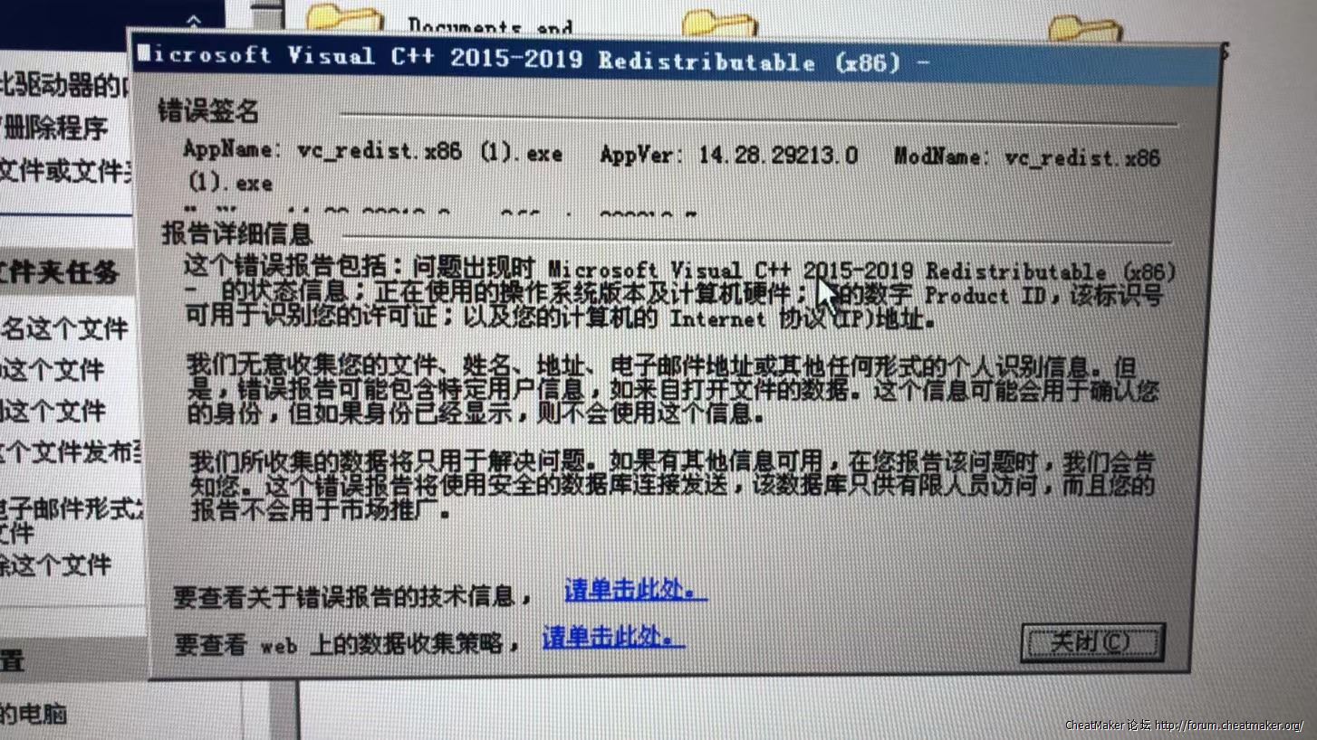 下载了VC2019,竟然安装不了,这次在安装就出错了,之前安装的顶置里面的VC2015,Microsoft Visual C++,这两个库。
