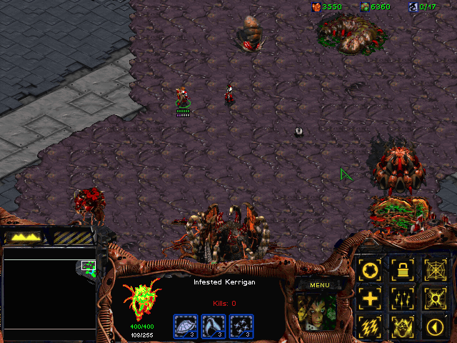 英雄Infested Kerrigan的近战攻击速度提升(攻击前后的帧数减半),同时添加了对空武器。